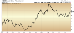 A strong loonie theoretically leads to lower exports, as Canadian goods become more expensive for major trading partners. This seemed the case in November, as the Canadian trade deficit jumped from $1.6 billion in October to $2.5 billion. The Canadian dollar continues to be threatened by U.S. protectionism, as over 75% of Canada’s exports are sent to the U.S. Ongoing NAFTA negotiations are a focal point for 2018.
