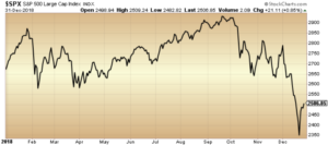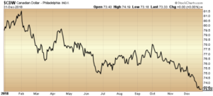 Even the strong American economy was unable to avoid the widespread market pessimism. The S&P 500 index ($SPX) ended the year down 4.4 per cent (total return), a stark contrast to the 21.8 per cent achieved in 2017. It would appear, however, that weakness in the loonie more than offset this decline; in Canadian dollar terms, the S&P 500 achieved a positive total return of 3.7 per cent.